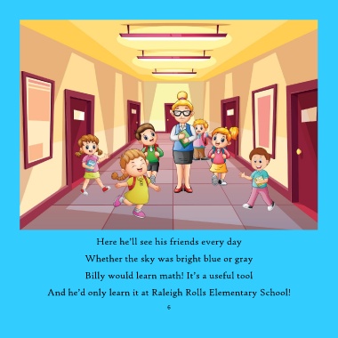 Here he’ll see his friends every day Whether the sky was bright blue or gray Billy would learn math! It’s a useful tool And he’d only learn it at Raleigh Rolls Elementary School! 6