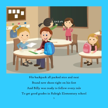 His backpack all packed nice and neat Brand new shoes tight on his feet And Billy was ready to follow every rule To get good grades in Raleigh Elementary school 5
