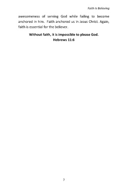 Faith Is Believing awesomeness of serving God while failing to become anchored in him. Faith anchored us in Jesus Christ. Again, faith is essential for the believer. Without faith, it is impossible to please God. Hebrews 11:6 7